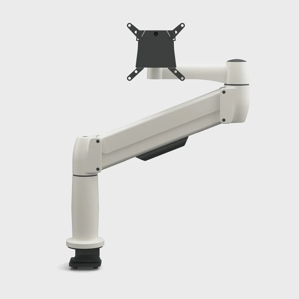 Dank des einzigartigen Gasfederungssystems ist er einer der stärksten und haltbarsten Monitorarme auf dem Markt und verfügt über ein schlankes, ergonomisches Design.