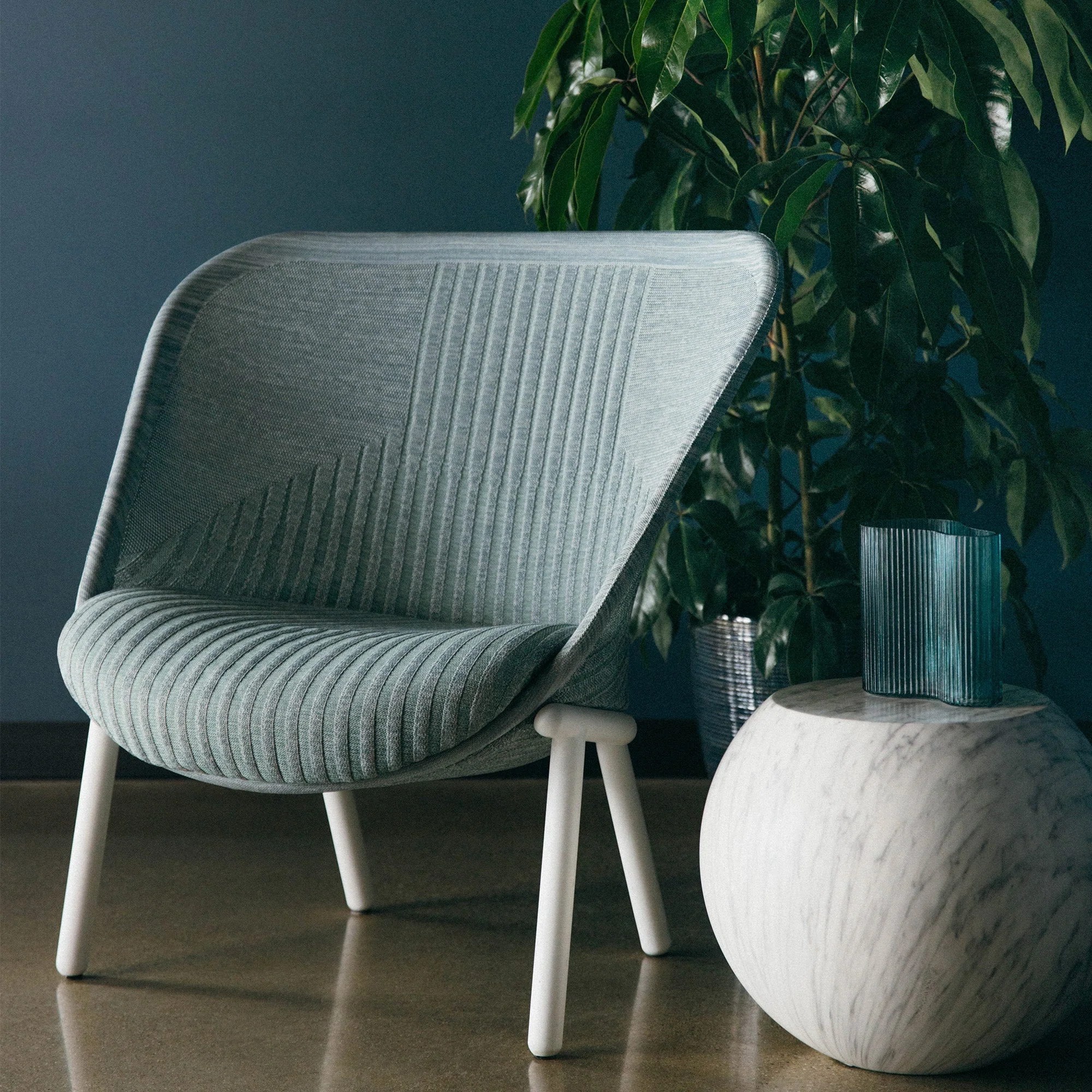 Haworth Cardigan Lounge ist ein Loungesessel, der nach nachhaltigen, kreisförmigen Designpraktiken hergestellt wird. Haworth Cardigan Lounge ist in einer Reihe digitaler Strickfarben erhältlich und bietet mit seinem weichen, strukturierten, kokonartigen Design eine leichte, luftige Präsenz. Es ist ein bequemer Stuhl mit einer verformbaren, gerippten Rückenlehne, die verschiedene Körperhaltungen unterstützt.